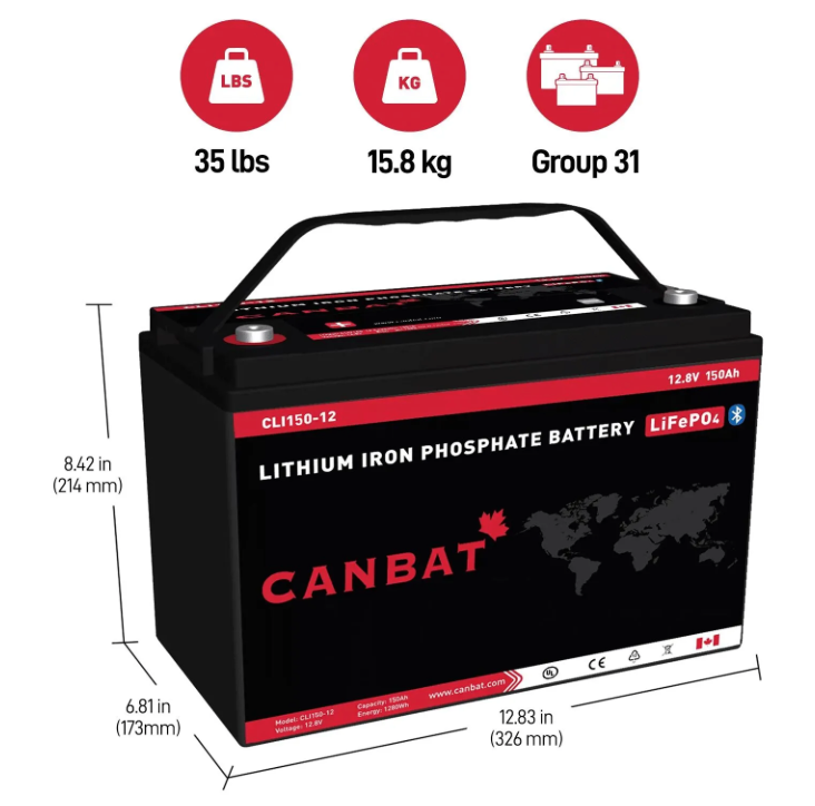 Canbat is the number one lithium battery Canada supplier and we are the only company offering free shipping across the country. Got a question? You can also contact us either by email or phone for customer support. Our lithium battery experts are here to help you with any technical questions about our CLI150-12 model or other LiFePO4 batteries.