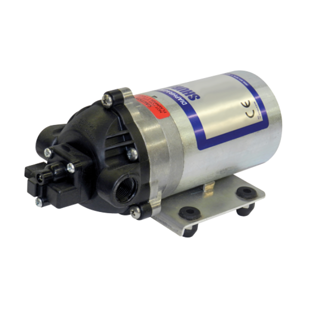 The 8000 Series diaphragm pump is Shurflo®'s most widely used industrial and agricultural pump. With spherically shaped valves and automatic demand switch, these pumps deliver consistent, dependable operation and priming; up to 1.8 GPM [6.8 l/min]. They are available in a variety of chemically resistant materials. They can be mounted in any position, and are designed for easy maintenance. They are available in a variety of voltages, from 12 VDC to 230 VAC.